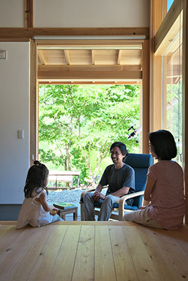 この地域の景観に浸透していくような家になりました。地域になじんでいきつつ、季節の移り変わりを感じながら暮らしていきたいですね。また、自然素材をふんだんに使った家ですので、日々の暮らしの中で木が生きているのを感じています。この家と一緒に家族みんなが健康的に暮らしていければと思います。