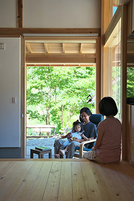 この地域の景観に浸透していくような家になりました。地域になじんでいきつつ、季節の移り変わりを感じながら暮らしていきたいですね。また、自然素材をふんだんに使った家ですので、日々の暮らしの中で木が生きているのを感じています。この家と一緒に家族みんなが健康的に暮らしていければと思います。